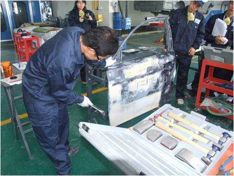 老師們親自實(shí)操鈑金修復(fù)