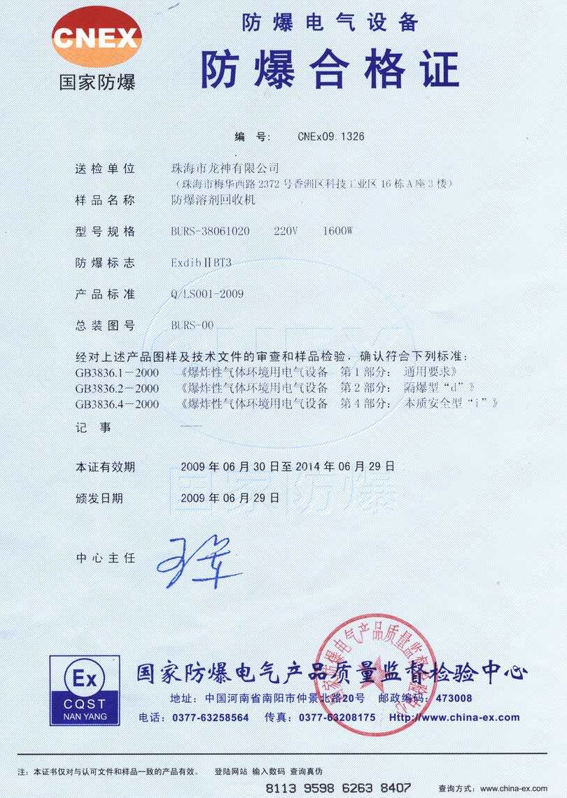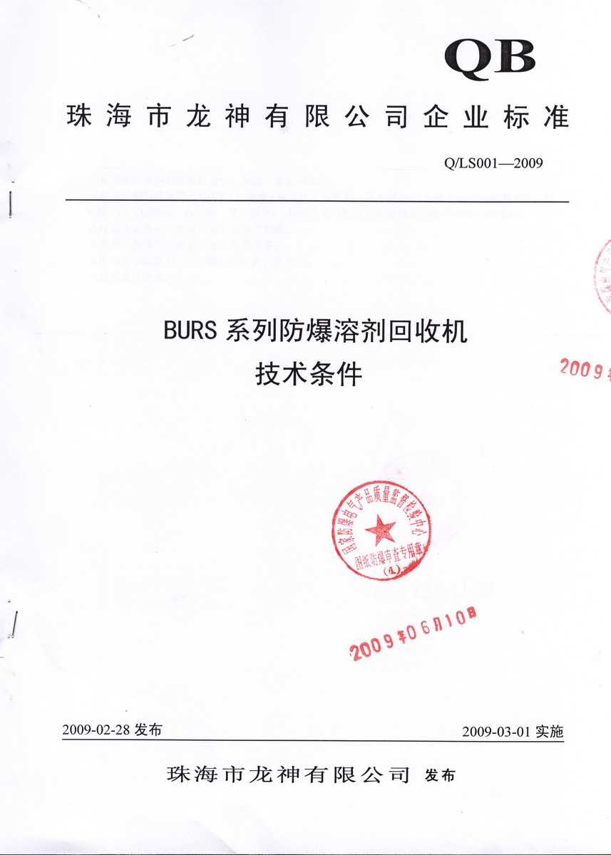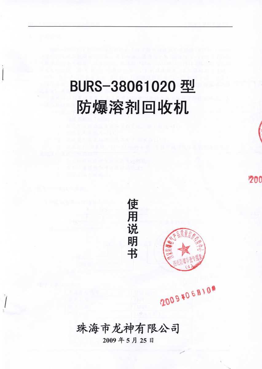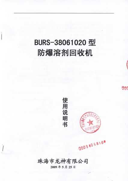 防爆認(rèn)證 防爆溶劑回收機(jī)防爆合格證 BURS系列防爆溶劑回收機(jī)技術(shù)條件 BURS-38061020型防爆溶劑回收機(jī) 使用說明書 BURS-38061020型防爆溶劑回收機(jī) 圖紙資料 (以上圖片均可點(diǎn)擊放大) 2012-11-27 34952