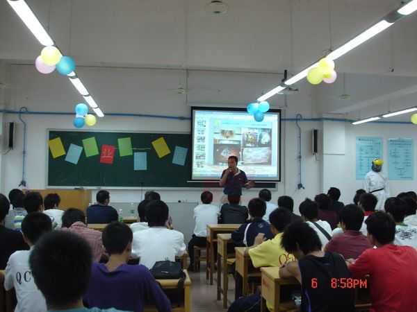 學(xué)長(zhǎng)朱福鏢(現(xiàn)龍神實(shí)操技師)與社團(tuán)成員交流實(shí)踐經(jīng)驗(yàn)