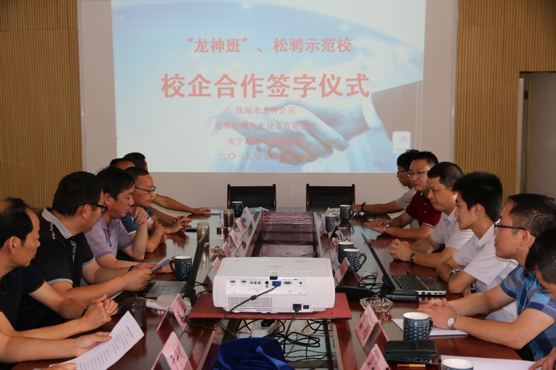 珠海龍神與安寧職中“Longco-ABP”校企合作項目協(xié)議簽訂 2015-08-13 14909 2015年7月31日,珠海市龍神有限公司、云南昆明松騁汽車設(shè)備有限公司及安寧市職業(yè)高級中學(xué)各方代表,在安寧市高級職業(yè)中學(xué)就“Longco-ABP”校企合作項目舉行簽約儀式。