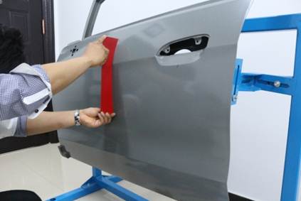 選手對(duì)凹陷部位分析、打磨、合理使用工具及設(shè)備,按正確工藝進(jìn)行損傷修復(fù)。