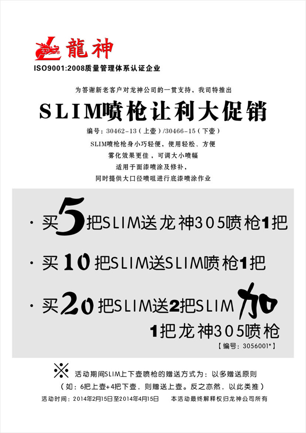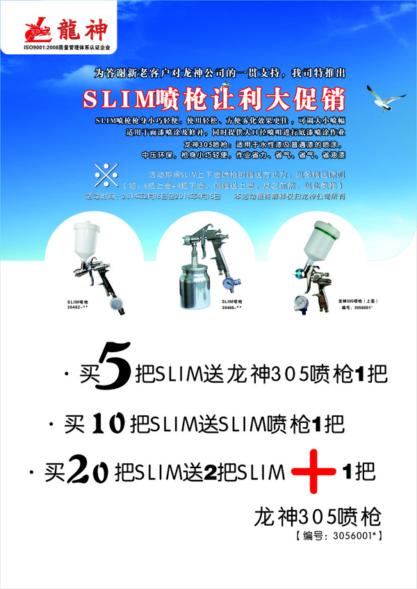 SLIM噴槍2014年2月份促銷(xiāo)方案