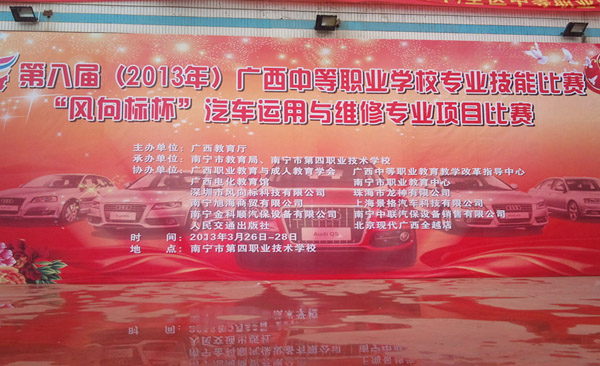 2013年3月28日,珠海龍神有限公司協(xié)辦的第八屆(2013年)全區(qū)中等職業(yè)學(xué)校專(zhuān)業(yè)技能比賽,“風(fēng)向標(biāo)”杯汽車(chē)運(yùn)用與維修專(zhuān)業(yè)項(xiàng)目比賽廣西賽區(qū)在南寧市第四職業(yè)技術(shù)學(xué)校鳴鑼收兵,84人(42組)載譽(yù)而歸。