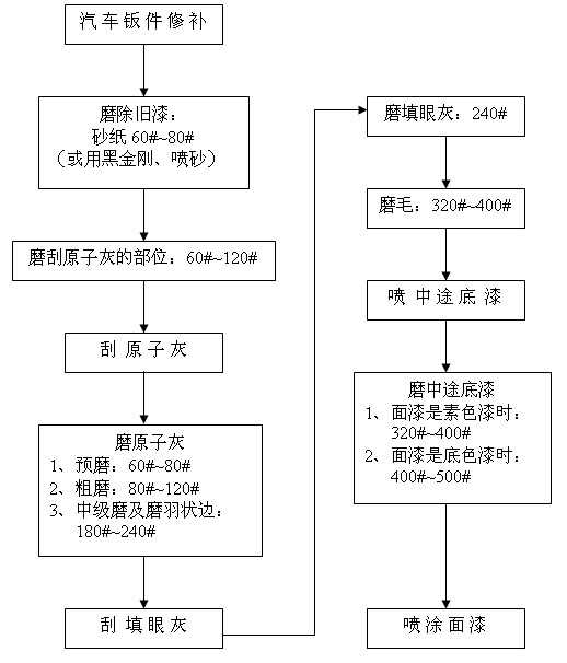 汽車修補干磨程序及砂紙的選擇 備注: 1、除舊漆時采用黑金剛配除漆除銹機能夠快速地除去平面、狹縫及凹凸不平表面的舊漆與銹漬;采用噴砂槍噴砂還可以很快地去除某些孔隙、縫隙或手都很難伸進去的部位的舊漆與銹斑; 2、在磨填眼灰、中途底漆和尤其有邊角位、弧度位的表面時配打磨緩沖墊(置于圓盤砂紙和托盤之間)能夠使打磨作業(yè)更加順暢,并能獲得規(guī)則的表面質(zhì)量。 2007-08-25 12418