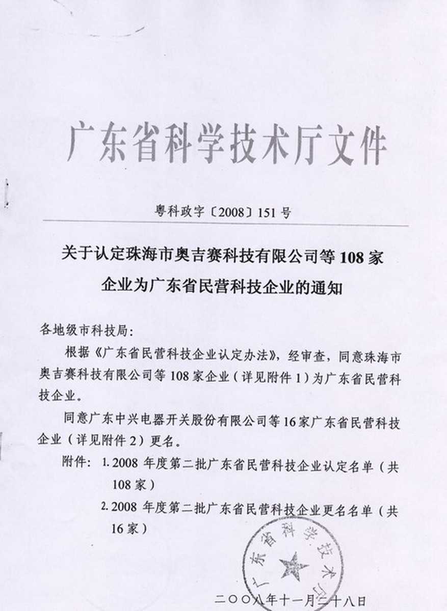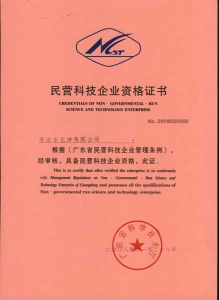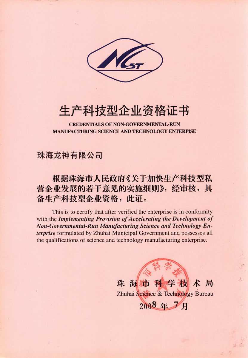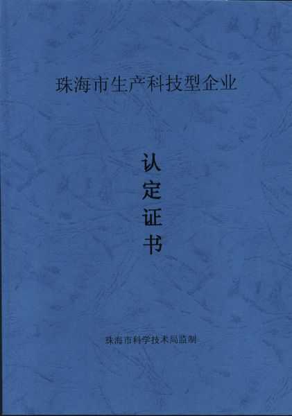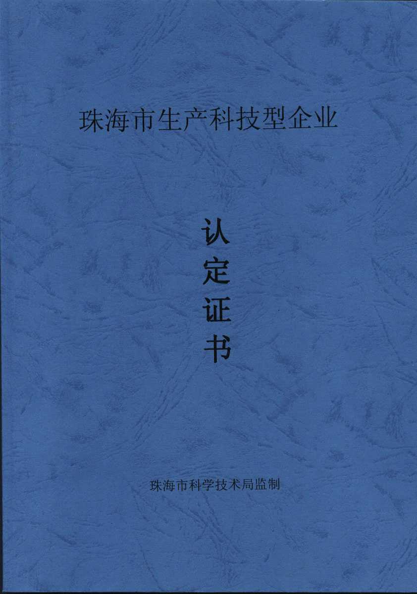 珠海市生產(chǎn)科技型企業(yè) 認(rèn)定證書(shū) 生產(chǎn)科技型企業(yè)資格證書(shū)
