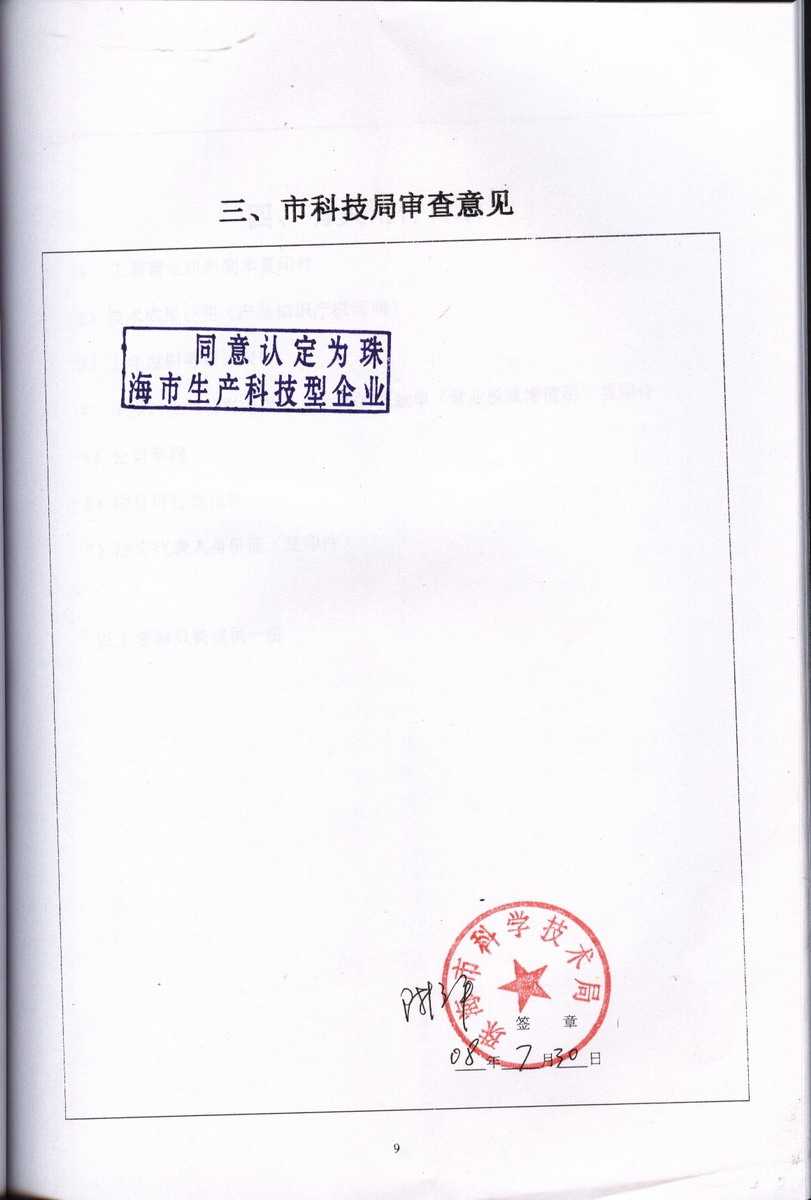三、珠海市生產(chǎn)科技企業(yè)證書(shū)